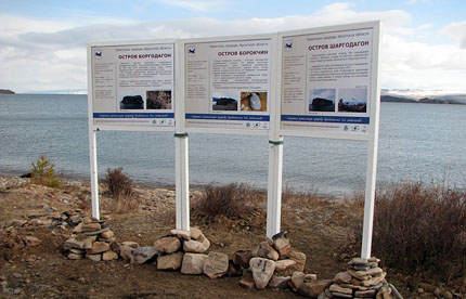 В октябре 2012 года были установлены информационные щиты по 12 памятникам природы: Мыс Кобылья голова, остров Большой Тойник, остров Боргодагон, остров Шаргодагон, остров Борокчин, мыс Саган-Хушун, мыс Хобой, Эоловые формы, Реликтовый ельник, остров Бакланий камень, бухта Песчаная, мыс Бурхан.