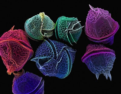 Диатомовые водоросли — одноклеточные организмы, которые играют важную роль в биосфере и стоят в основе пищевых цепей в водных экосистемах. С греческого «диатомос» означает «разделённый пополам». Диатомеи имеют пористый панцирь из прозрачного кремнезема, состоящий из двух частей, одна из которых как крышка накрывает другую. Поэтому о них говорят, что они живут в стеклянных домах.