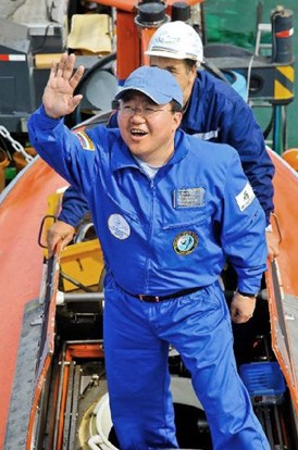 батискафу подошел президент Монголии Элбэгдорж, среди журналистов